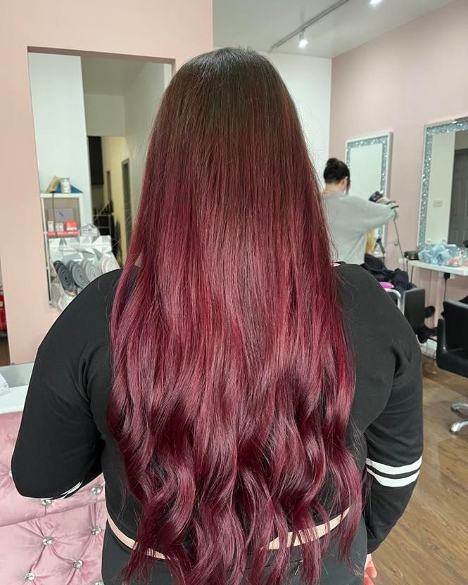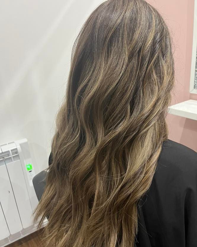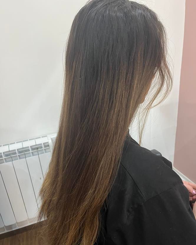 A whole day spent in the salon to correct this colour to a dark brown to light blonde balayage, and then we added 140g pre-bonded extensions.